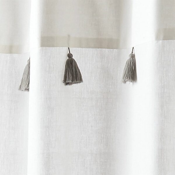 Tassel accents add a lively vintage element to this 72-inch Grey and White Stripes Cotton Shower Curtain with Tassels. Add a modern taste of coastal living to your shower and soak in the easy, breezy lifestyle with a stripe shower curtain. Slim, sophisticated stripes race across the surface of this shower curtain. Vintage tassels dress the hem for a playful charm. Available colors to match your resort style.