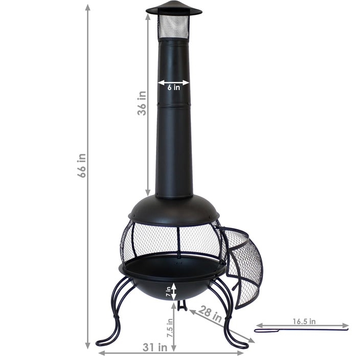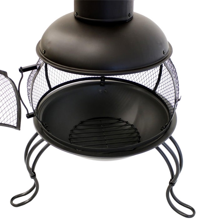 Create a warm and cozy gathering spot on the patio or in the backyard with this unique Large Black Outdoor Steel Chimenea Wood Burning Fire Pit. It offers a unique 360-degree view, so you can gaze on the fire at any angle. This chiminea also includes a log grate to promote better airflow for a better burning fire.