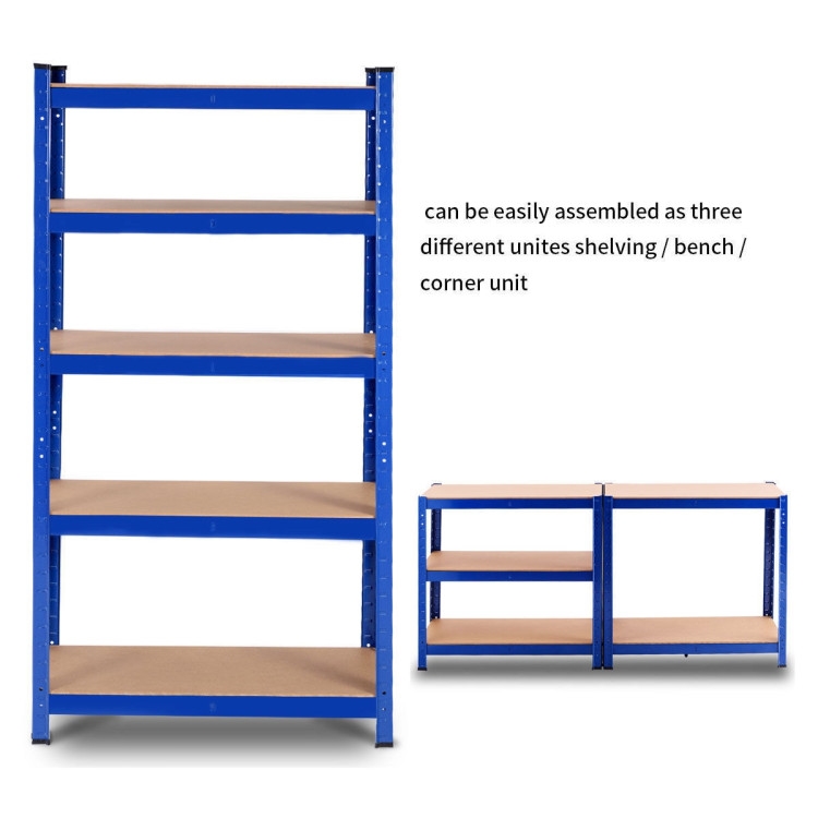 This Heavy Duty Steel 5 Tier Garage Adjustable Shelving Storage Rack is made from strong powder-coated metal tube and high quality MDF that is durable, sturdy, and stable. This space saving design instantly turns space into a neatly organized storage center adaptable to your specific needs. The height of each layer can be randomly adjusted. Free-standing design that is great for the kitchen, bathroom, dining room to organize.
