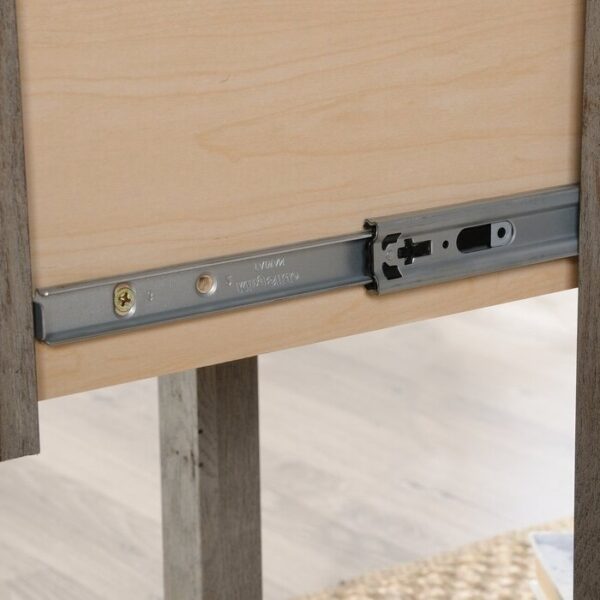 - Drawers with full extension slides feature patented T-slot assembly system.