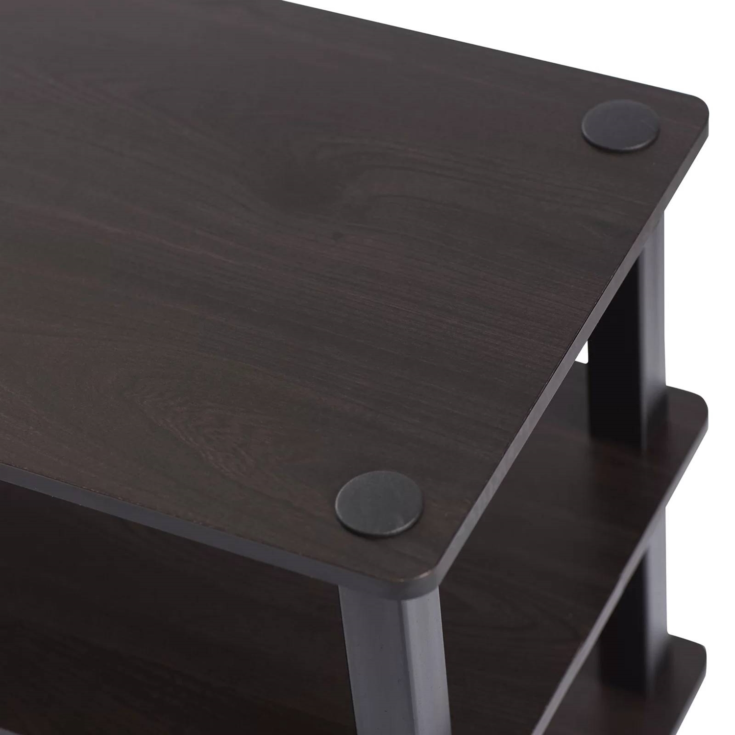 If your entryway isn’t exactly organized, this Modern 3-Shelf Espresso Black Shoe Rack – Holds up to 18 Pair of Shoes can spruce things up in a second! Crafted from manufactured wood and PVC tubes, features a neutral solid finish that works in any setting. Three openwork tiers let you tuck away shoes, or add in baskets to keep out-the-door accessories easily corralled. Some assembly is required for this product. Consider a larger option if you’re looking to store large shoes (Men’s Size 13 or over).