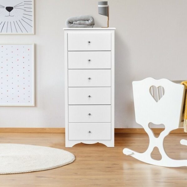 Strapped for space for need plenty of storage? This Modern White 6 Drawer Tall Wood Dresser Chest is perfect for any bedroom no matter the size. Practical and attractive, this tall design provides ample storage space for all rooms