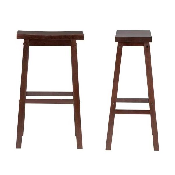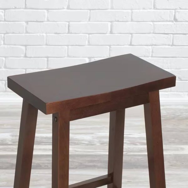 A classic silhouette with comfortable curves makes our Set of 2 Farmhouse Bar Height Saddle Seat Barstools in Brown Walnut Wood Finish the ideal companions for modern tastes. The backless saddle stool can easily cozy up to a kitchen counter or bar. Sturdy wood profile is enhanced with a warm walnut finish.